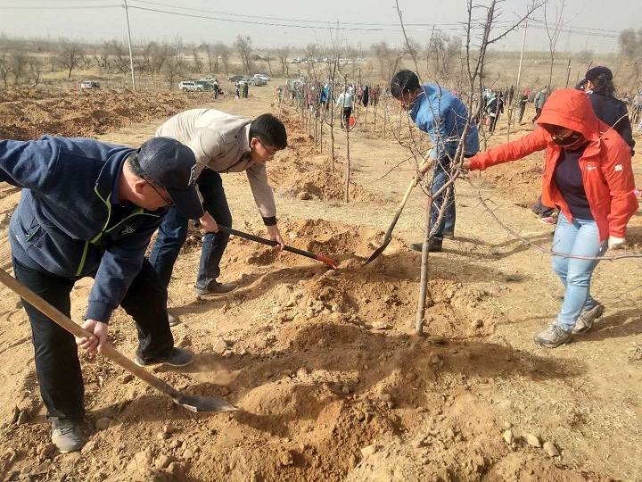 种一棵小树,许一个心愿,绿一方净土。4月2日下午,阿左旗编办积极响应全旗春季植树号召,组织全体干部赴营盘山北坡开展义务植树活动。